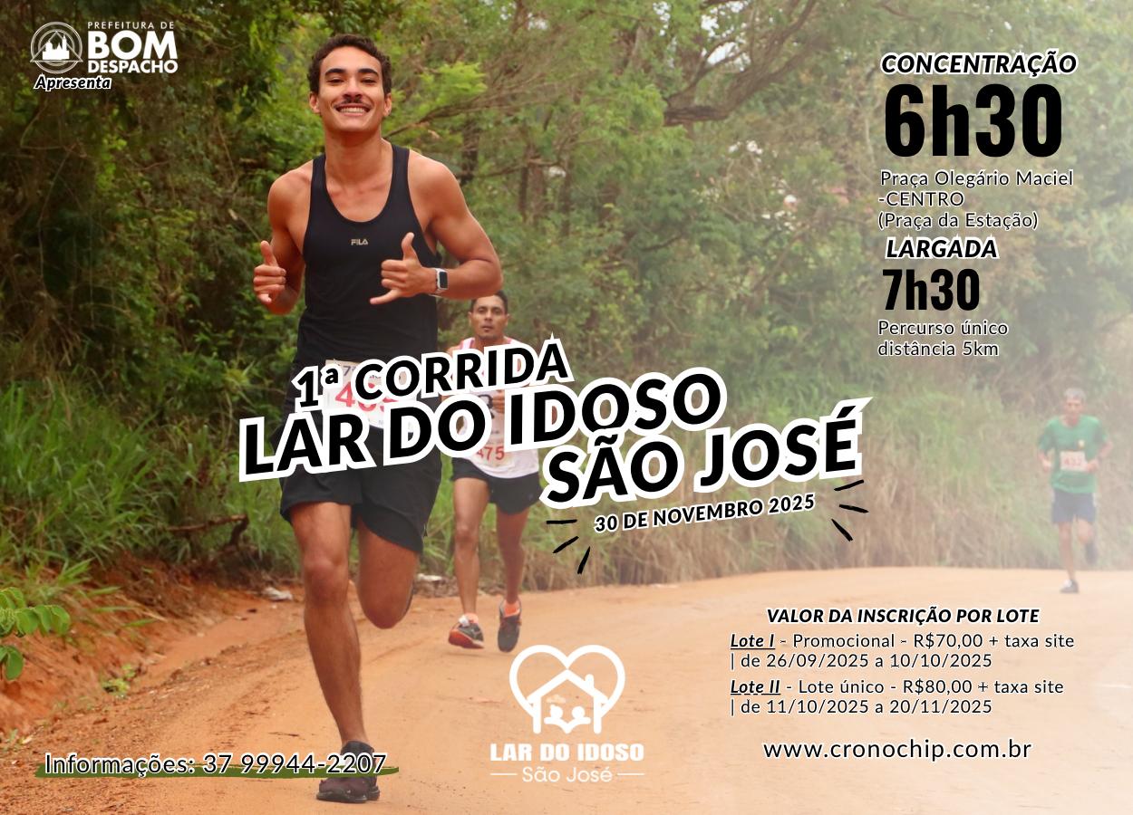 2.1. A 1ª CORRIDA LAR DO IDOSO SÃO JOSÉ será realizada no dia 30 de novembro de 2025, (domingo), com largada às 7h30min para mulheres e homens.