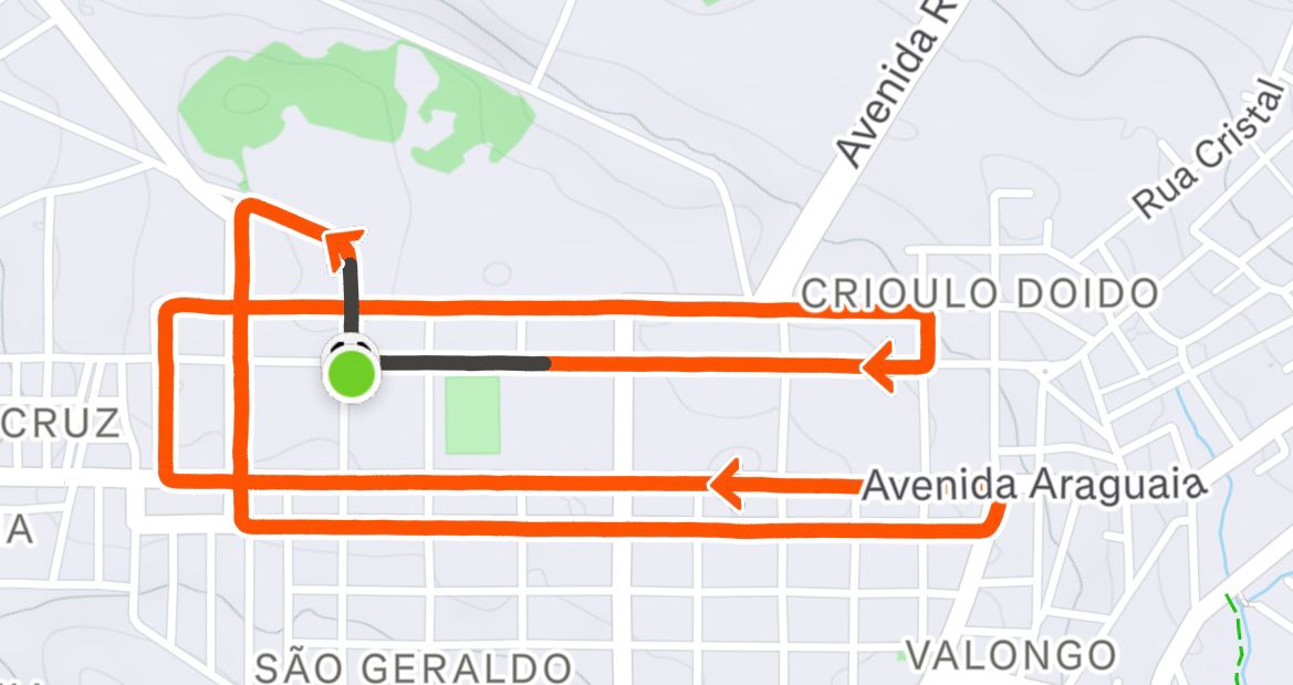 • LARGADA - Rua São José (Asimec), Av. Carandaí, Rua São Pedro, Rua Prof. Sebastião Moreira, Av. Bela Vista, Av. Araguaia, Rua São José (Asimec) CHEGADA.