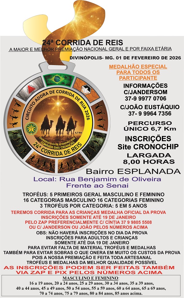 Obs: A entrega do número de peito será no dia da prova até 7,30 horas
