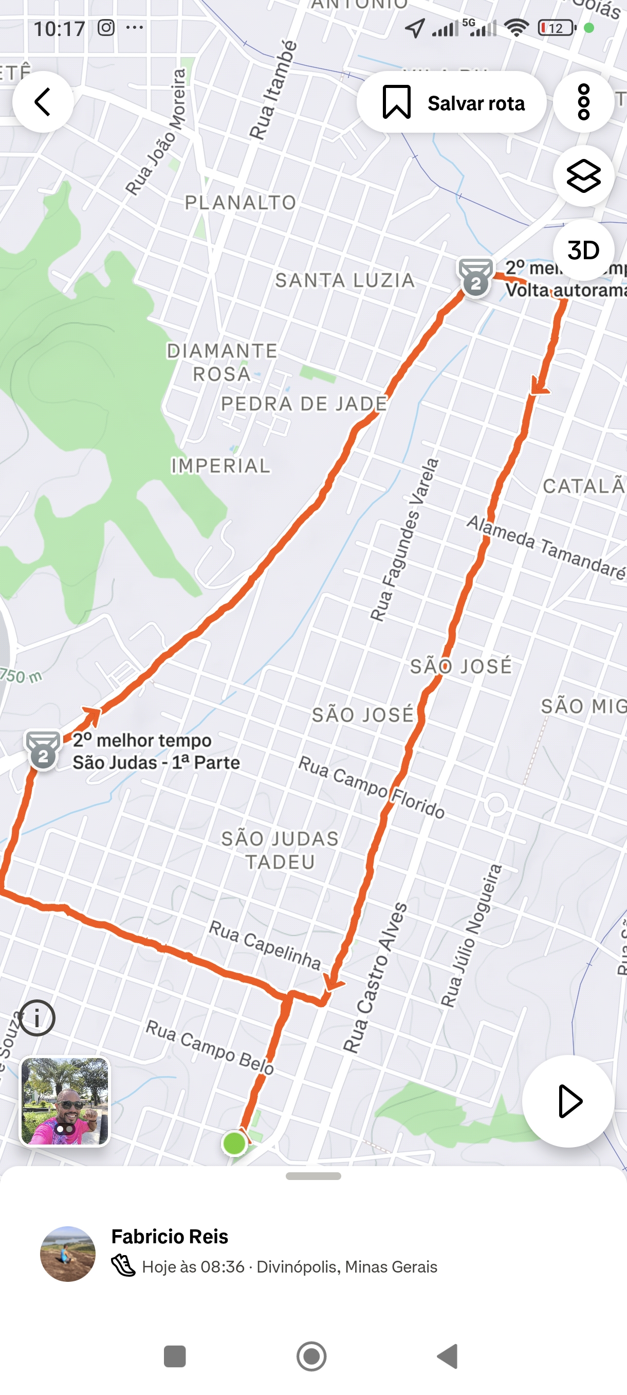 de Largada/Chegada: Praça da Bíblia, Bairro São Judas, Divinópolis MG.