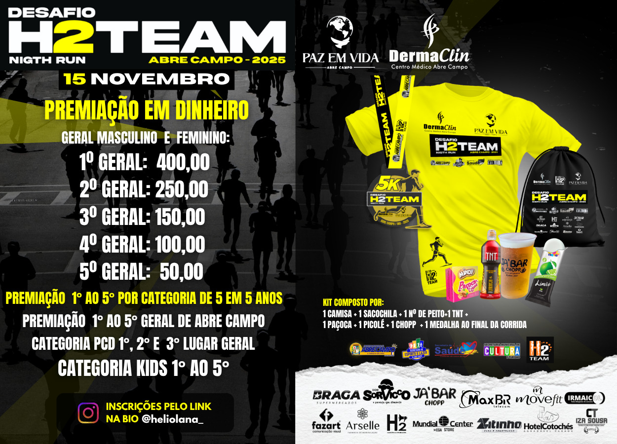 Artigo 3º. O DESAFIO H2 TEAM -NIGHT RUN- Etapa ABRE CAMPO 2025 será disputado na distância de 5km.
