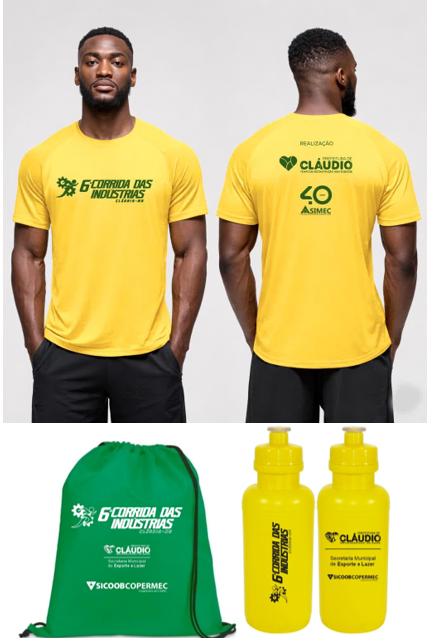 5.1. O kit será composto por uma blusa alusiva ao evento (anexo I), número de peito, garrafa squeeze e mochila, brindes (se houver). Haverá mesa de frutas no dia do evento.