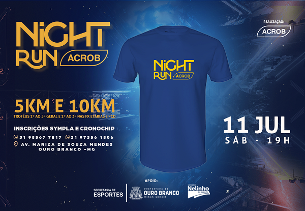 A NIGHT RUN ACROB 2026 é uma corrida de rua promovida pela ACROB – Associação de Corredores de Ouro Branco, em comemoração aos 25 anos da entidade, incentivando o esporte, a saúde e a qualidade de vida.